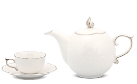 Bộ trà 0.7L Sen IFP Chỉ Bạch Kim: - 01 bình trà 0.7L - 06 tách trà 0.11L - 06 dĩa lót tách 13cm